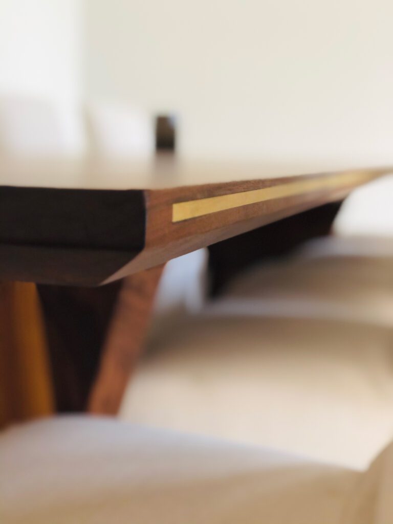 Inlays are a great way to add flair to a table top. Between different materials and placement, there are thousands of options to utilize inlays to create a customized product.